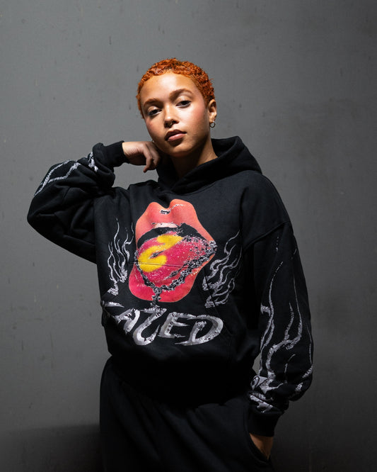 TWOFACED FLAME CROPPED HOODIE BLACK