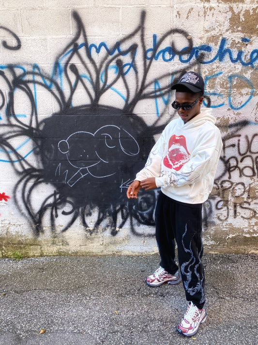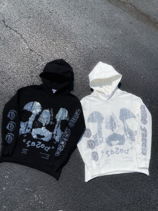 CUSTOM FA2ED EDGE CUT RHINESTONE HOODIE DISTRESSED (REDEYE 2)