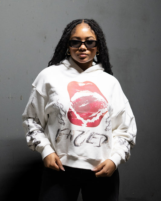 TWOFACED FLAME CROPPED HOODIE WHITE